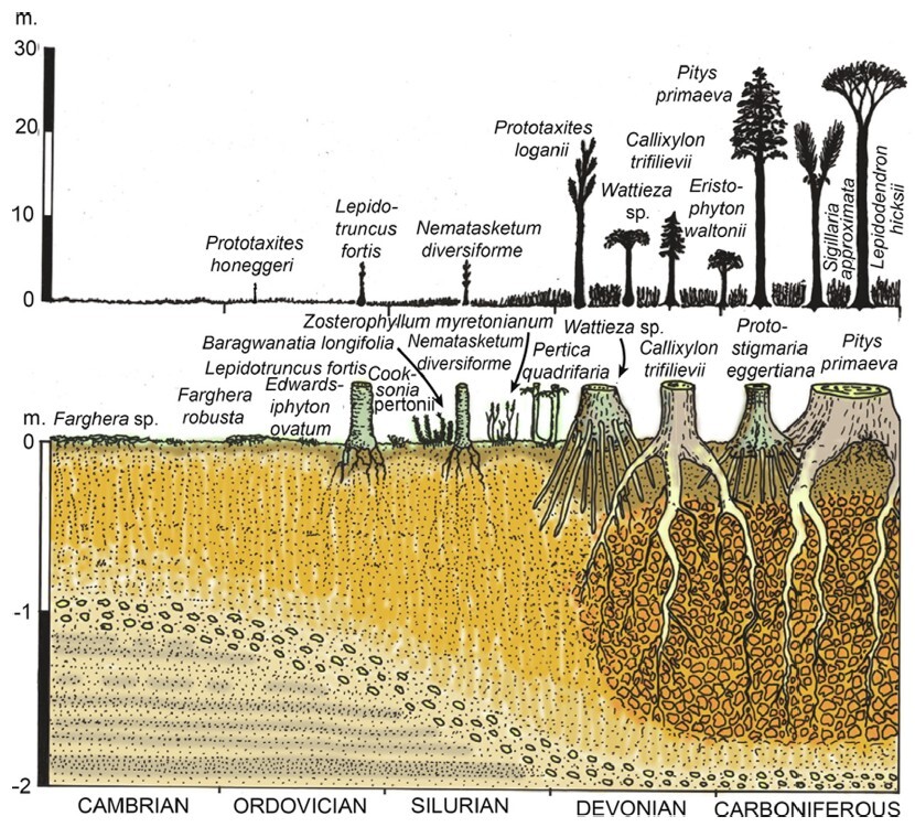 reflective to sunlight. This project seeks to understand these relationships by mapping out the initial expansion of forests during the Devonian period some